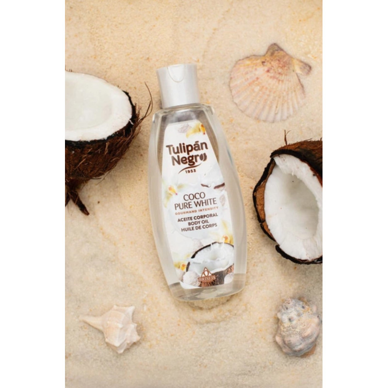 Чудовий продукт для догляду за тілом, який перетворить щоденний процес догляду за шкірою на справжнє задоволення. Легко наноситься і швидко вбирається, надає шкірі гладкості та м'якості. Екзотичний, солодкий аромат огортає відчуттям свіжості та розслаблення, ніби ви знаходитесь на райському пляжі. Призначений для догляду за всіма типами шкіри. Відкрийте для себе секрет м'якої шкіри з ексклюзивною олією для тіла Ніжний кокос від іспанського бренду Tulipan Negro. Цей натуральний еліксир не тільки інтенсивно живить, а й перетворює вашу щоденну процедуру догляду за собою на унікальний чуттєвий досвід. Легка формула, що швидко вбирається. Властивості: Ця олія багата на незамінні жирні кислоти, антиоксиданти і вітаміни, вона глибоко зволожує, покращує еластичність і відновлює шкіру. Унікальний тропічний аромат: м'який та теплий аромат кокосу перетворить вашу повсякденну рутину у моменти благополуччя та розслаблення. Розслаблюючий ефект: натуральний аромат має заспокійливі властивості, ідеально підходить для зняття стресу та возз'єднання з природою. Стійкий та ніжний: делікатно огортає шкіру ароматом на кілька годин, не викликаючи роздратування. Крім того, ця олія для тіла живить і пом'якшує шкіру, надаючи їй природний блиск і шовковисту текстуру. Ідеально підходить для масажу або як щоденний зволожуючий засіб, а його аромат залишиться з вами протягом усього дня. Дозвольте Body Oil Coco Pure White огорнути вас чарівністю: ефективний догляд за шкірою та ароматна насолода для ваших почуттів.