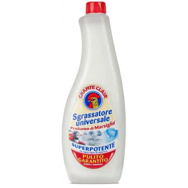 – це вигідний і зручний формат потужного та універсального засобу, який дозволяє повторно використовувати флакон зі спреєм, зменшуючи кількість пластикових відходів і заощаджуючи кошти. Chante Clair Sgrassatore Universale чудово знежирює, видаляє стійкі плями, нагар, ретельно очищує будь-які поверхні. Особливість засобу – присутність у складі всесвітньо відомого марсельського мила зі своїм неповторним автентичним та чистим ароматом. Саме зі створення цього мила почалася історія Chante Clair, і воно й досі залишається невід’ємною частиною продуктів бренду. Очищувач можна використовувати для всього: кераміки, сталі, інших матеріалів та навіть текстилю. Він працює скрізь! Ідеально справляється з очищенням кухонних поверхонь, духовки, витяжки, підлоги, посуду, механічних деталей, ванної кімнати. Однаково добре підходить як для домашнього, так і для професійного використання. Зручний розпилювальний механізм працює навіть у перевернутому положенні, що дозволяє легко обробляти найприхованіші куточки та використовувати засіб до останньої краплі. Засоби Chante Clair – це ваш надійний союзник у боротьбі з брудом, основними цінностями якого є традиції, якість та ефективність. Бренд Chante Clair, назва якого перекладається як «Чистий Спів», пропонує широкий асортимент товарів, виготовлених за європейськими стандартами, для всіх ваших потреб у прибиранні. Висока якість продукції забезпечується ретельним відбором сировини, науковими дослідженнями та продуманими виробничими процесами.